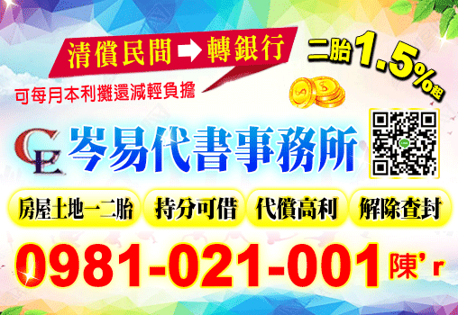 房屋土地一二胎 持分可借 代償高利 戒除查封