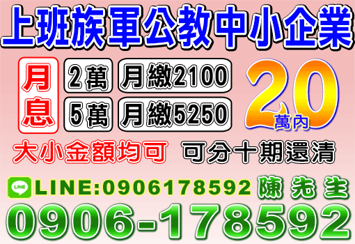 24小時無限時段立即放款,按月繳款,輕鬆月付有工作皆可辦理,借貸好簡單,輕鬆月繳只要有資金需求立即為...