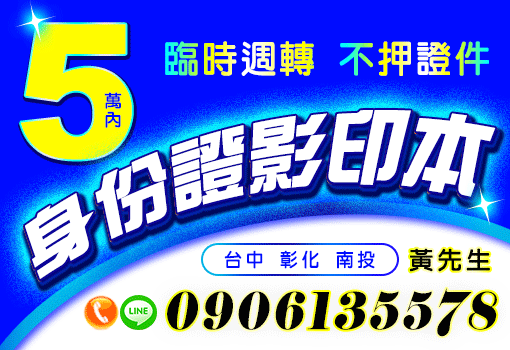 台中借錢,身份證借款《Yes借錢網》證件借款,身份證影本借款,5萬內,臨時週轉,不押證件,
