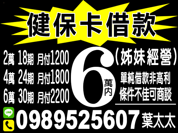 台南借錢,身份證影本借款《Yes借錢網》台南小額借錢,台南證件借款,健保卡借款,姊妹經營,單純借款非高利,條件不佳可商談,2萬分18期月付1200元,4萬分24期月付1800元,6萬分30期月付2200元,當日撥款