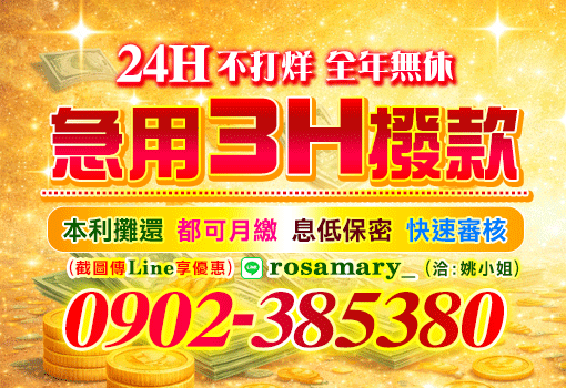 3小時內撥款,解決急用錢問題。新北、桃園同步支援,流程簡單、免繁瑣審核,讓你輕鬆借錢、快速周轉資金。桃園借貸快速通道,急用錢首選!提供彈性借款方案,小額借錢輕鬆申請。台北、新北皆可辦理,低利率、高過件率,快速解決資金困擾。借錢專線:0902-385380加入好友:rosamary_