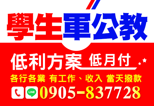 學生軍公教借錢推薦- 桃竹苗/中彰投/北北基,低利方案當日領現